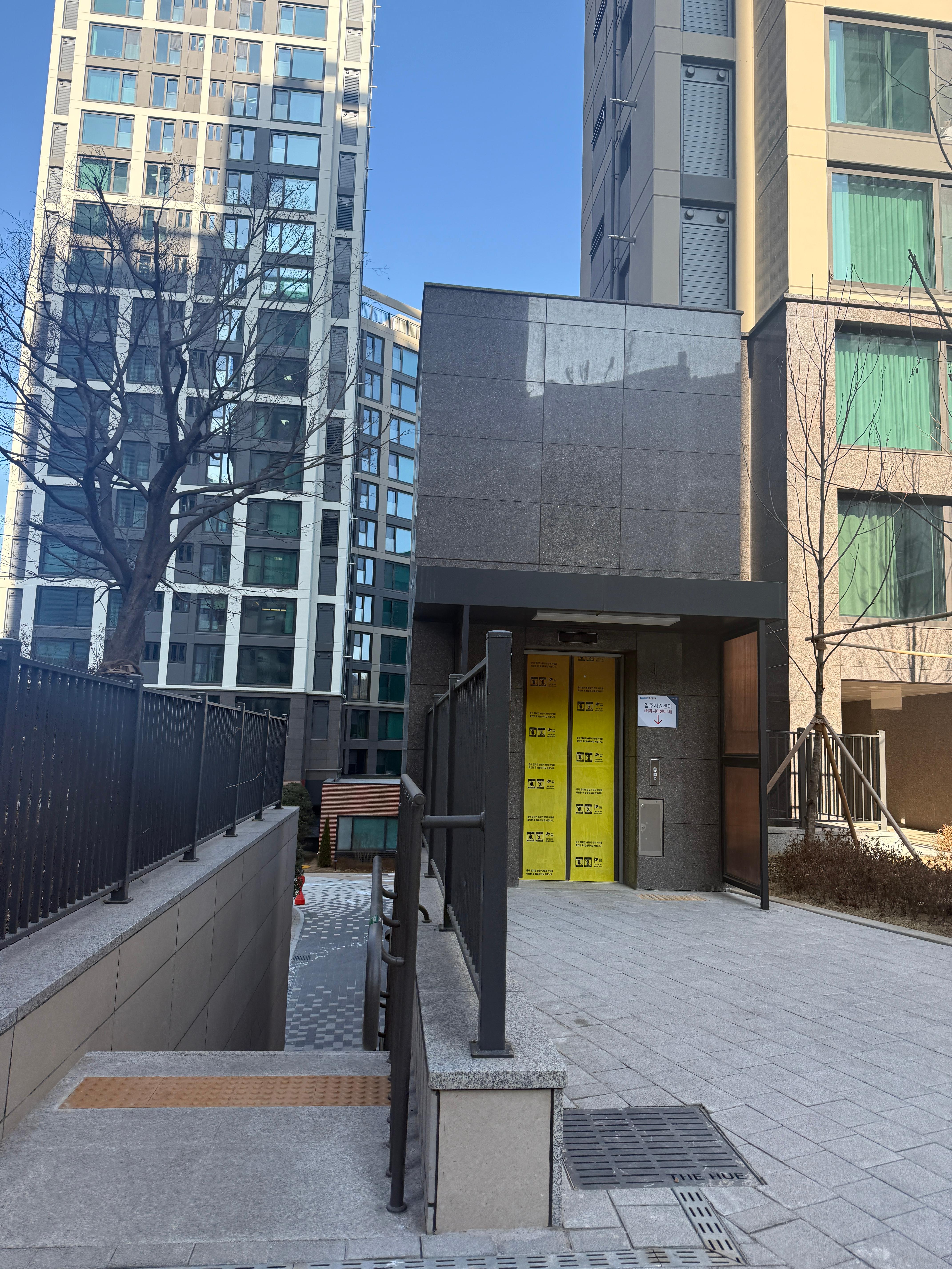 단지내에서 엘리베이터를 타고 움직임. 단차가 좀 있는듯